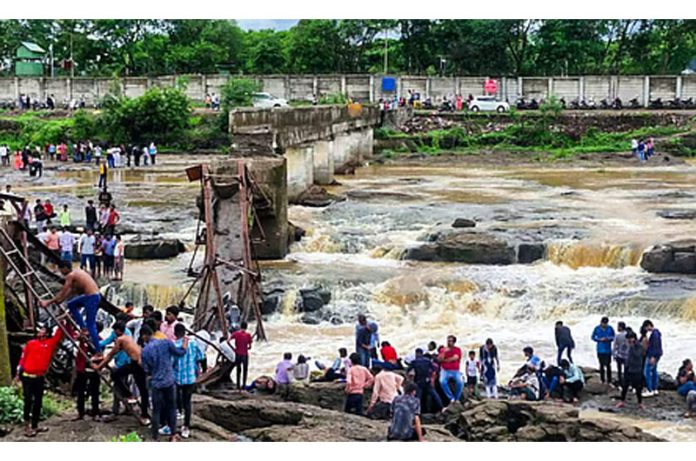 PUNE, Jun 15: Four persons died and 18 others were seriously injured after an old iron pedestrian bridge on the Indrayani river collapsed on Sunday afternoon in Pune’s Maval tehsil, prima facie due to crowding by tourists who ignored the warning board at the spot, a state minister said.