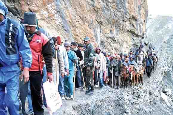 Pilgrims, who had night halt at different halting stations on the traditional route, have also started their foot journey towards the cave shrine this morning. (AGENCIES)
