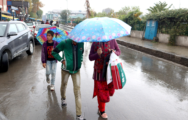 After witnessing above normal night temperature due to overcast conditions, people woke up to a rainy and chilly Sunday morning in the summer capital, Srinagar. Incessant intermittent rain continued throughout the morning, resulting on waterlogging of many roads in the city. But, as the day progressed Sun came out from behind the clouds, resulting in considerable improvement in the day temperature.