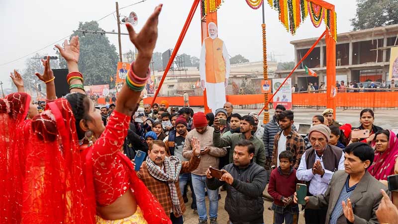 AYODHYA, Dec 30: From the vibrant ‘Dedhiya’ dance of Uttar Pradesh to a colourful performance of ‘Choliya’ of Uttarakhand, folk colours of India were laid on the streets of Ayodhya to welcome Prime Minister Narendra Modi to the temple town on Saturday.