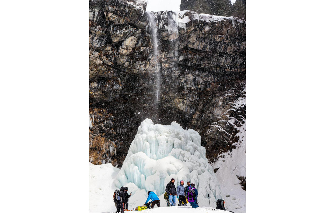 POONCH, Feb 13: Nandichool frozen waterfall is attracting visitors and tourists from the Union Territory as well as adjoining states of Jammu and Kashmir to take a glimpse of the frozen waterfall in Loran area of Poonch.