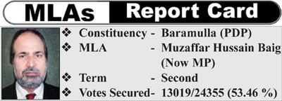 Javaid Baig, Personal Secretary to Muzaffar Hussain Baig, said that the MLA tried his best to develop Baramulla constituency, but the coalition Government of National Conference and Congress put hindrances in approving projects and sanctioning funds for them during these years.