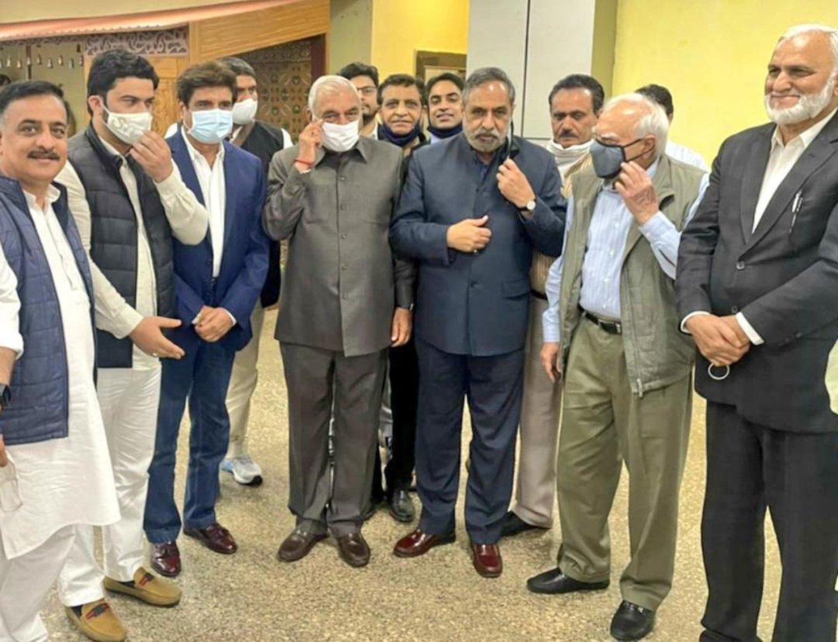 ‘G23’ Congress leaders in Jammu on Friday. By Daily Excelsior - February 27, 2021 Share FacebookTwitterWhatsAppPinterestLinkedinCopy URLTelegramEmailTumblrReddItPrintKoo ‘G23’ Congress leaders in Jammu on Friday. ‘G23’ Congress leaders in Jammu on Friday. Follow our WhatsApp channel