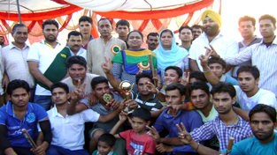 Winners of Azad Cricket Tournament posing alongwith dignitaries in Samba.