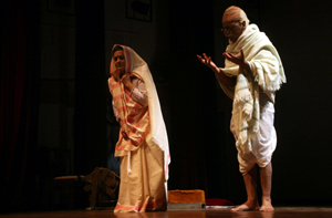 Written by Rajneesh Gupta and director J R Sagar, the play in Hindi ‘Gandhi Adalat Mein’ , staged at the Police Auditorium, here today, tells the story of Mohan Das Karamchand Gandhi (J R Sagar) and Kasturba Gandhi’s (Sapna Soni) complex and troubled relationship with their eldest son Harilal Karamchand Gandhi (Himanshu Darshan).