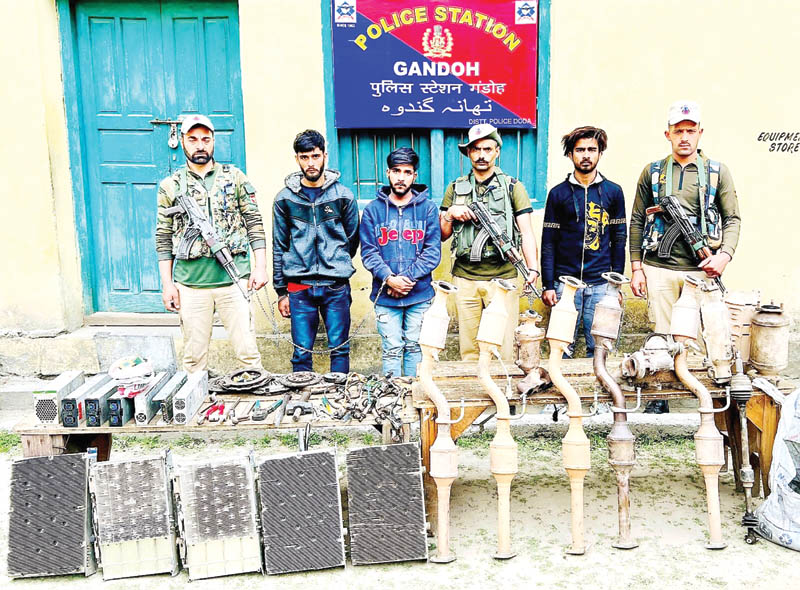 DODA, Apr 3: Gandoh Police busted a gang involved in stealing costly automobile parts with the arrest of three members of the gang along with stolen items worth around Rs 6 lakh.