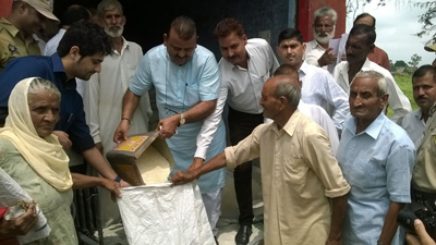 SAMBA Aug 10: Minister for Industries and Commerce, Chander Parkash Ganga today distributed free ration among border residents of Pakhri, Rangoor Camp, Govind Garh and Nanga in Samba District. These flood victims of last year were given free ration for two months only. On the initiative of the Minister, free ration distribution was started again today among the victims. The Minister interacted with the villagers and said Government is committed to provide all basic amenities to the flood affected people of the State.
