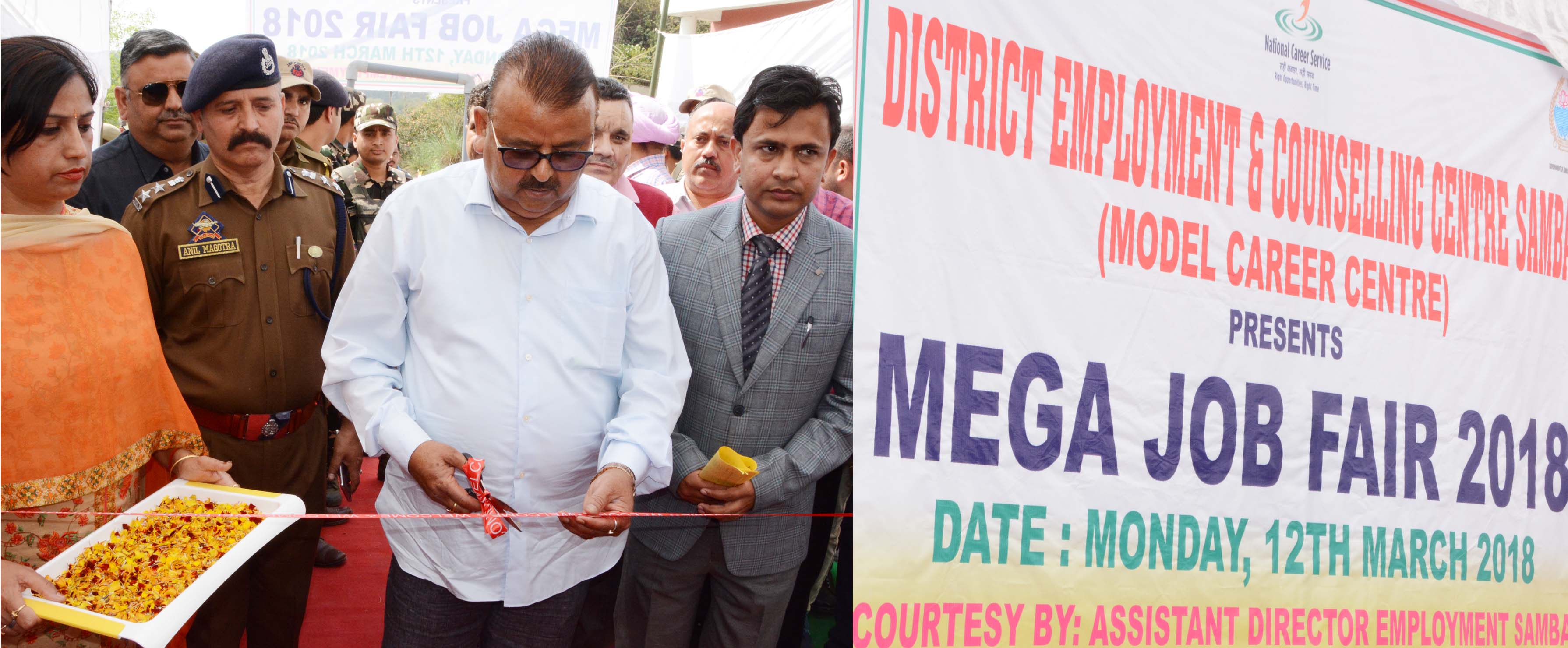 JAMMU: Minister of Commerce & Industries, Chander Prakash Ganga today inaugurated a mega job fair organized by District Employment and Counselling Centre, Samba under National Career Service Programme of Union Ministry of Labour and Employment.