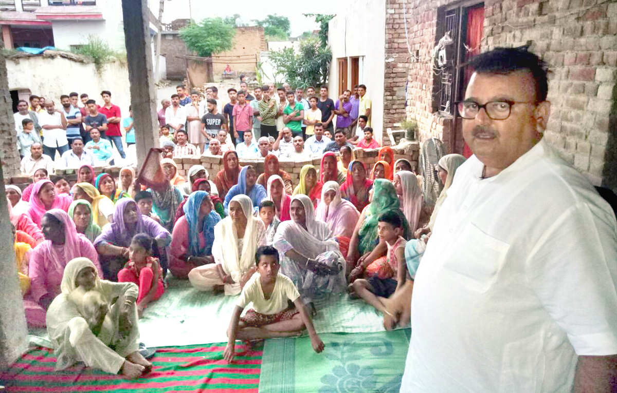 Former Minister and MLA Vijaypur C.P. Ganga addressing a public meeting at Ramgarh on Monday. — Excelsior/Gautam