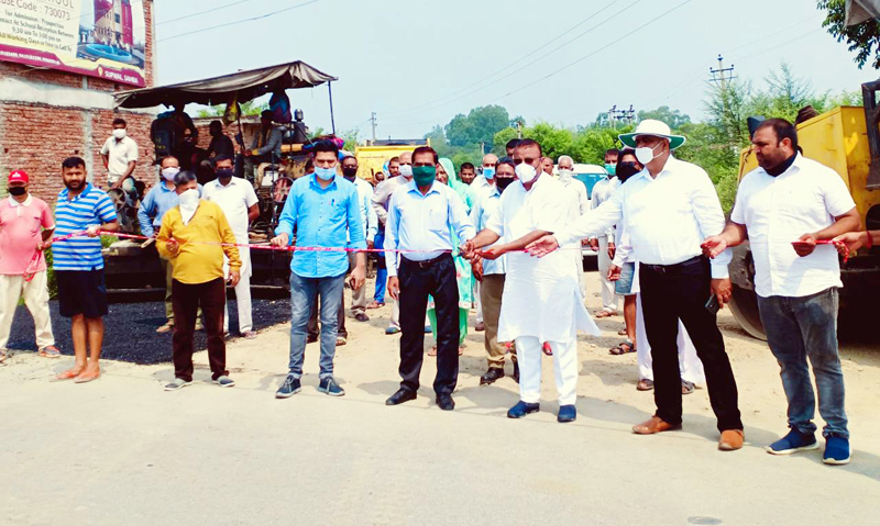 SAMBA, June 8: Former Minister and Ex MLA, Vijaypur, Chander Prakash Ganga today launched blacktopping work on 2.25 km road from Link road Swankha Morh to Village Rara.