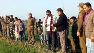 SAMBA: The Minister for Industries and Commerce, Chander Parkash today toured border villages Mahal Sahan, Jhar, Keso and Kamore camp of Ramgarh Tehsil and assessed the problems faced by people due to cross border firing. He was accompanied by Deputy Commissioner Sheetal Nanda, SSP Anil Magotra and other officials.