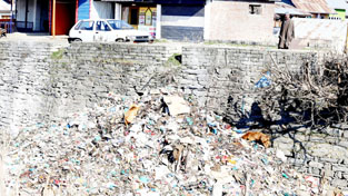 Garbage dumped by MC Sopore along Jhelum bank.-Excelsior/Aabid Nabi