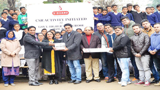 Gaurav Sharma (Branch Head) V-Guard Industries providing essential items to HSS Muthi in Jammu on Tuesday.
