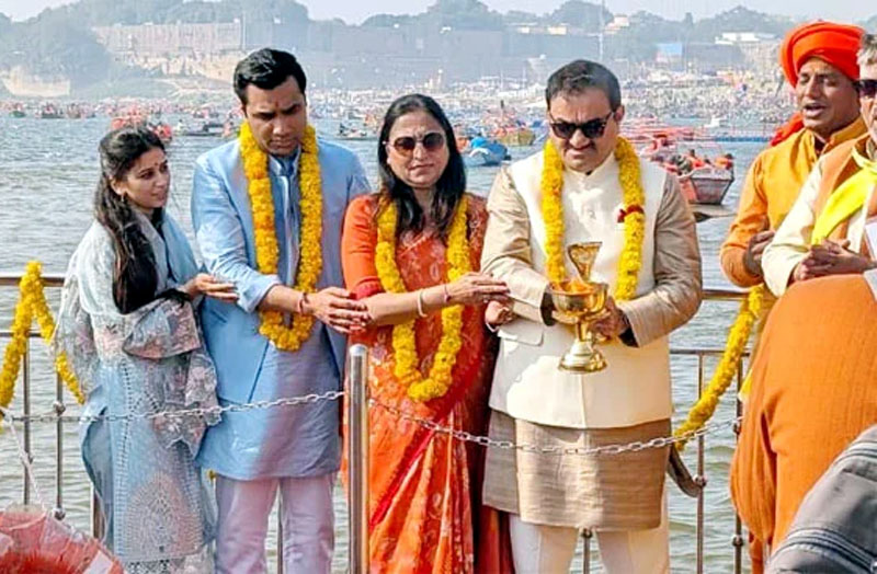 Adani reached Prayagraj with his family in the afternoon took a bath and offered prayers at Triveni. He was accompanied by his wife Chairperson Adani Foundation Dr Preeti Adani, his son Karan Adani, daughter-in-law Paridhi Adani, and his granddaughters. Jeet Adani was also present with him at the Kumbh.