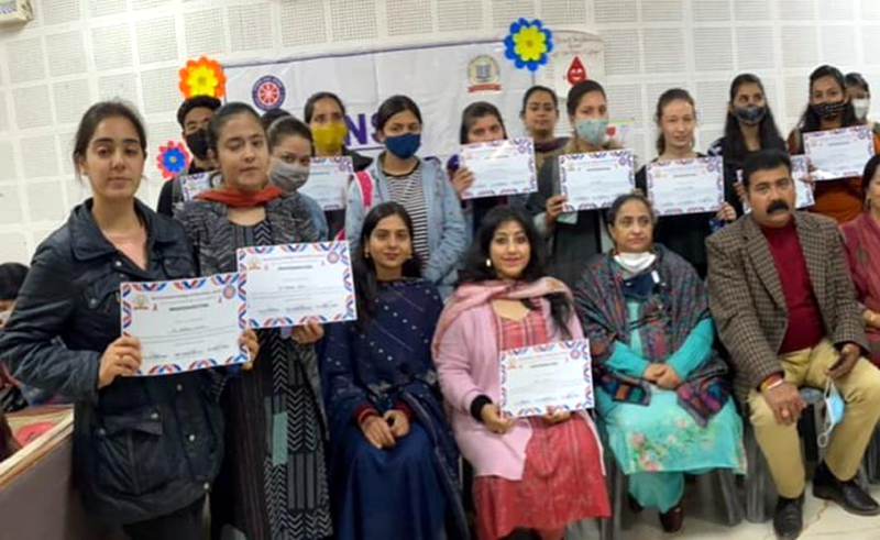 The blood donation camp was inaugurated by Principal of the College Dr Kulvinder Kour, who appreciated the efforts of NSS Programme Officer Dr Shubhra Jamwal and Convener of Red Ribbon Club Prof Radhika Mahajan and their team members for this noble cause. Dr Sanjogita Sudan, Health Officer, Jammu Municipal Corporation was the chief guest on the occasion.