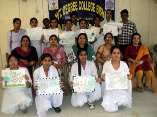 JAMMU, Oct 28: The NSS Unit of GDC Bishnah organized a Painting Competition on the theme “Environmental Pollution” as part of the 10-days NSS Camp, under the Convenership of Prof Sunita Gupta and under the supervision of Dr Savtanter Kour, NSS Programme officer. Volunteers expressed their views regarding environmental issues and ways to conserve the environmental components through paintings.