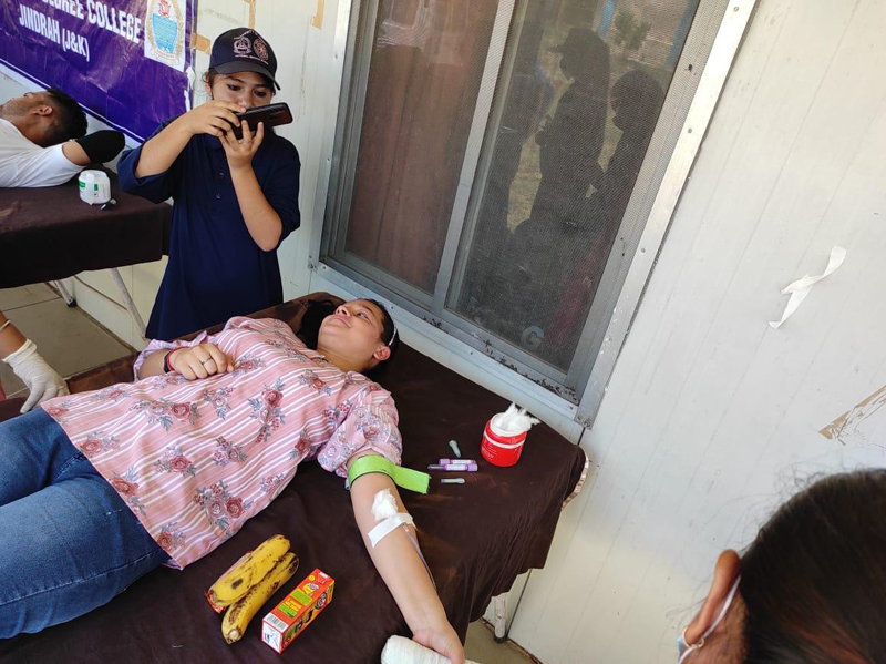 JINDRAH, June 24: The NSS unit of Government Degree College (GDC) Jindrah today organised a blood donation camp at village Jindrah under the supervision of a team from the Blood Bank of Government Medical College Jammu.