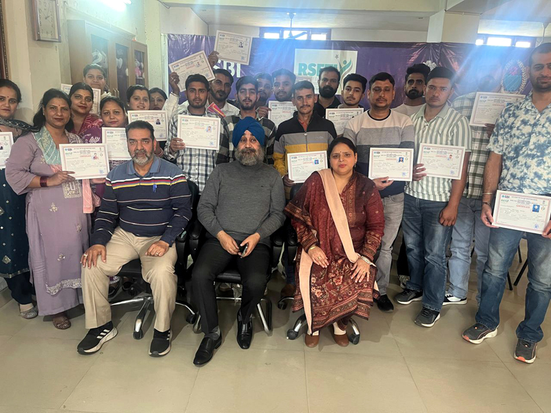 On this occasion, a function was organized in which certificates of participation were distributed by Mohd Sadiq, District Officer, J&K Khadi and Village Industries Board (JKKVIB) Jammu and Bikramjit Singh, Director SBI RSETI Jammu.