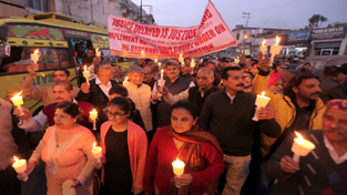 General category members, employees & students taking out grand candle-light march in Jammu on Saturday evening. — Excelsior/Rakesh