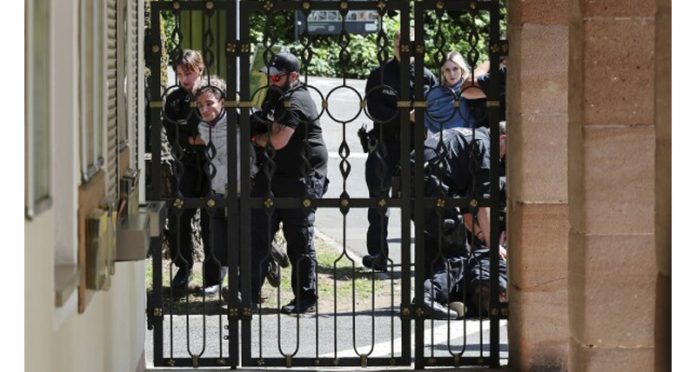 On Tuesday afternoon, police said several activists forced their way into the grounds, a few of them gluing themselves to the ground before being detained.