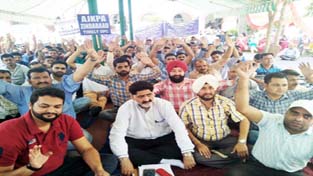 Girdawars and Patwaries raising slogans during pen down strike at Jammu on Monday. By Daily Excelsior - June 5, 2018 Share FacebookTwitterWhatsAppPinterestLinkedinCopy URLTelegramEmailTumblrReddItPrintKoo Girdawars and Patwaries raising slogans during pen down strike at Jammu on Monday. Follow our WhatsApp channel