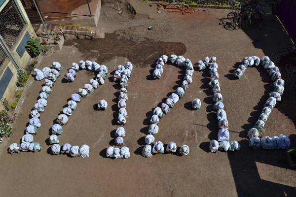 Girls from Shaheen Urdu High School make a human chain to mark the special day 12-12-12 which falls once in a century on the eve of the 12 December 2012, in Karad on Tuesday. (UNI)