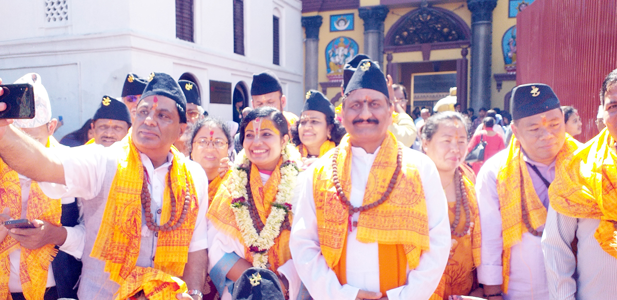 The delegates of the conference were taken to the world famous Pashupatinath temple in Kathmandu and a special Puja-Mahaabhishek was organised on the occasion. All delegates were given Prasad, Rudrakshmala, shawl, memento and Napali cap by the Mandir Pratishthanam.