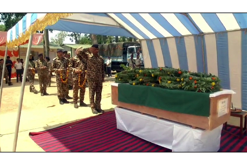 The last respects were paid to CRPF jawan Kabir Das by the senior CRPF and police officials at a wreath laying ceremony in Kathua, officials said.