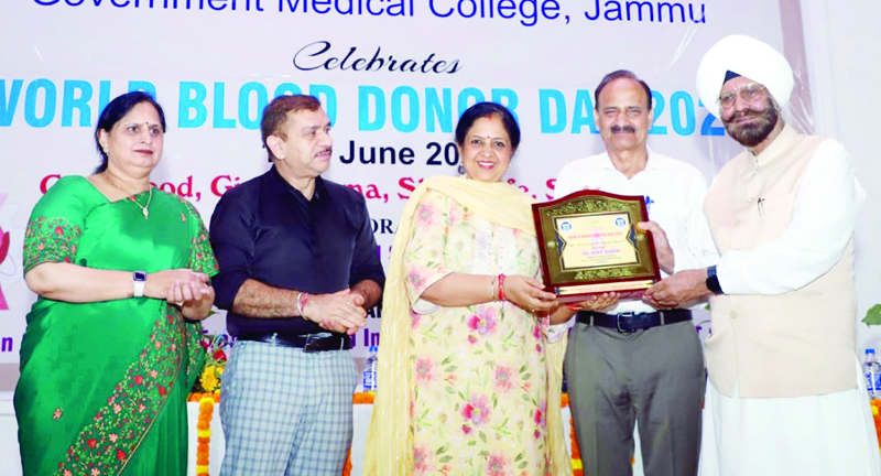 JAMMU, June 17: The Department of Transfusion Medicine, Government Medical College (GMC) Jammu in collaboration with J&K AIDS Control Society, National Health Mission J&K and ISBTI J&K Chapter organized a function to celebrate World Blood Donor Day.