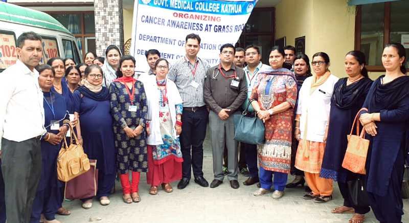 JAMMU, May 11: Government Medical College (GMC) Kathua under the leadership of Principal Dr Shashi Sudhan organized a cancer awareness camp at Rural Health and Training Centre (RHTC) Budhi.
