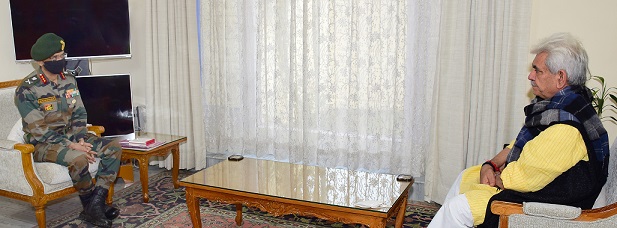 The GOC discussed important security issues and the overall security management in the union territory with the Lt Governor. He briefed the Lt Governor about the prevailing scenario along the forward areas including the Line of Control, LoC. Anti-terrorist operations and matters pertaining to coordination with other security forces were also briefed by the GOC.