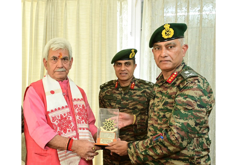 Jammu, Apr 1: Lieutenant General Rajan Sharawat, General Officer Commanding (GOC), Rising Star Corps called on Lieutenant Governor Manoj Sinha, today and discussed various important aspects pertaining to prevailing security scenario.