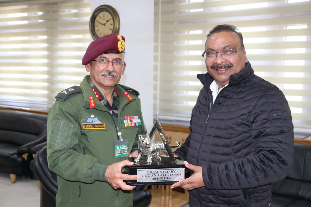 JAMMU, Dec 13: General Officer Commanding (GoC) of 26 Infantry Division Major General Neeraj Gosain on Tuesday called on Director General of Police (DGP) Dilbag Singh and discussed the security scenario in Jammu and its peripheries, officials said.