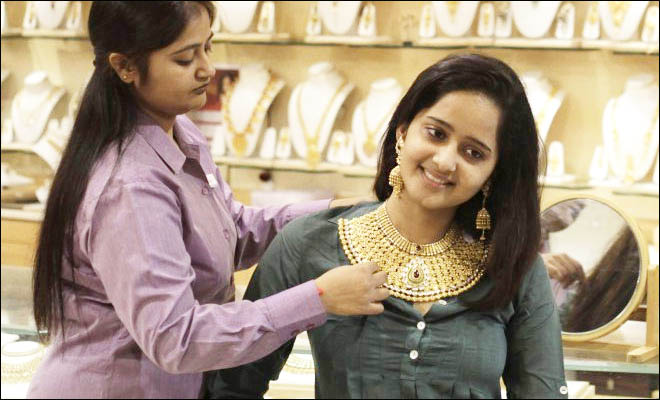 Globally, gold fell 0.13 per cent to USD 1,217.90 an ounce in Singapore.