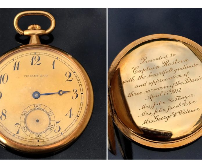 The 18-carat Tiffany & Co. Watch was given by three women survivors to Capt. Arthur Rostron for diverting his passenger ship, the RMS Carpathia, to save them and others after the Titanic struck an iceberg and sank in the north Atlantic on its maiden voyage in 1912.