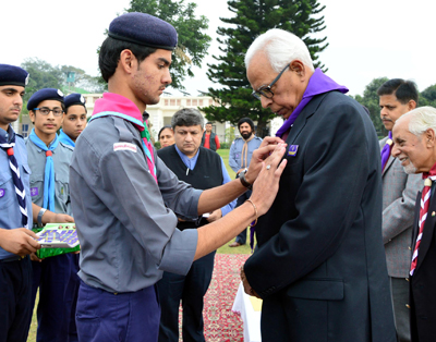 In his welcome address, N.A. Khan, State Chief Commissioner, J&K State Bharat Scouts and Guides, dwelt on the activities of the organization undertaken in the recent past and those planned for the coming months. He thanked the Governor for taking keen interest in the Scouts and Guides movement and for extending strong support for this purpose.