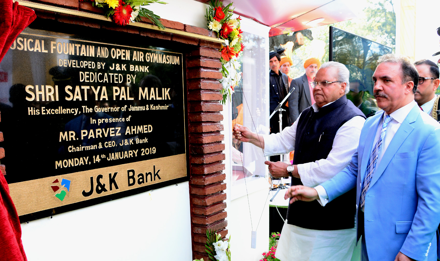 Jammu: Governor Satya Pal Malik dedicated a Musical fountain and Open Air Gymnasium to the people of Jammu in presence of the Chairman JK Bank Sh. Parvez Ahmed at the historic Rajinder Park, Canal Road Jammu. The Musical Fountain and Open Air Gymnasium has been installed by the J&K Bank for the citizens of Jammu under its CSR initiative.