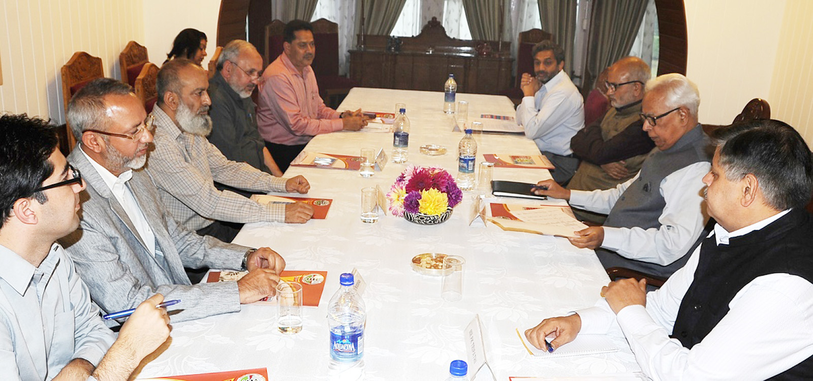 Mr. Naeem Akhter, Minister for Education; Mr. P.K. Tripathi, Principal Secretary to Governor; Dr. Khurshid Iqbal Andrabi, Vice Chancellor, University of Kashmir; Prof. Nazeer Ahmed, Vice-Chancellor, SKUAST-K; Prof. Mehraj-ud-Din, Vice Chancellor, Central University of Kashmir; Prof. Mushtaq A. Siddiqi, Vice Chancellor, Islamic University of Sciences & Technology; Awantipora; Mr. Shaleen Kabra, Commissioner School Education; and Dr. Shah Faesal, Director, School Education, Kashmir, participated in the meeting.