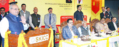 SRINAGAR, Oct 17: In a function held at SKICC today, Governor Satya Pal Malik electronically inaugurated J&K Bank’s 35 Ultra Small Branches (USBs), aiming at financial inclusion and empowerment of Ladakh, connecting 111 remotely located villages, besides, 5 USBs and 1 Business Unit, spread in districts of Samba, Poonch and Rajouri. He also e-inaugurated social infrastructure initiatives like parks, smart classes and street lights under CSR program.