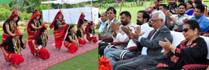 JAMMU, Mar 14: Governor N.N. Vohra and First Lady Usha Vohra hosted about 270 boys and girls and men and women from Assam, Arunachal Pradesh, Sikkim, Manipur, Nagaland, Tripura and Mizoram who are on an exchange visit to Jammu and Kashmir under the North East Youth Exchange Programme organized by the Nehru Yuva Kendra Sangathan, Jammu & Kashmir, at the Raj Bhavan here today.
