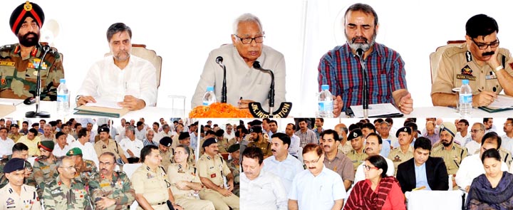 Mohammad Iqbal Khandey, Chief Secretary; Lt. Gen. Gurmit Singh, GOC, 15 Corps; Ashok Prasad, Director General of Police; Vinod Ranjan, Chairman, Pollution Control Board; B. B. Vyas, Principal Secretary to the Chief Minister; Suresh Kumar, Principal Secretary, Home; D. K. Pathak, Special DG, CRPF, J&K; V. K. Singh, ADG, Security; Arun Kumar Mehta, Principal Secretary, Power Development; Atal Dulloo, Commissioner/Secretary, Tourism; A. K. Tikku, Secretary, Pollution Control Board; Dr. Pawan Kotwal, Commissioner/Secretary, PHE, Irrigation and Flood Control; Ms. Tanveer Jehan, Commissioner/Secretary, R&B; Sarita Chauhan, Secretary, Animal and Sheep Husbandry; Shahid Anayatullah, Labour Commissioner; Zaffar Ahmad Bhat, Director Information; A. G. Mir, IGP, Kashmir; Maj. Gen. R. R. Nimbhorkar, GOC, Hqrs, Victor Force; P. K. Singh, IG, CRPF; G. A. Bhat, Director General, Fire and Emergency Services; Brig. Shode P. Manohar, Chief Signal Officer, 15 Corps; Brig. R. K. Sharma, Chief Engineer, Project Beacon; Vijay Kumar, DIG, Anantnag; Syed Afadul Mujtaba, DIG, Srinagar; Sarmad Hafeez, Deputy Commissioner, Ganderbal; Dr. Farooq Ahmad Lone, Deputy Commissioner, Anantnag; Prof. Showkat Ali Zargar, Director, SKIMS, Srinagar; Sonam Lotus, Director, Indian Meteorological Department, Srinagar; Shahid Mehraj, SP, Ganderbal; Preet Pal Singh, Additional Chief Executive Officer of the Board; Police Yatra Officers; Heads of Departments, Camp Directors, Additional Camp Directors, senior Civil, Army, Security Forces and Police officers were prominent among those who participated in the meeting.