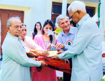 Governor honoured and presented momentoes to OP Modi, Patron-in-Chief and KL Dubey, Patron for their commendable long services to Balgram