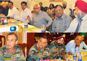Brig. (Retd.) Harcharan Singh, Secretary, Rajya Sainik Board, made a detailed presentation and provided details of the various measures taken for the welfare of the ex-Servicemen and financial status of the Board. The Governor lauded the efforts of the RSB for collecting Rs. 40 lakh under Flag Day Fund this year as compared to Rs. 15.79 lakh last year. He also informed that Rs. 3.81 crore was disbursed to 1892 cases during 2015-16 under welfare grants from J&K Government on account of WW-11 Relief, Miltia Relief, Penury, sewing machines, wheel chair, house repair, educations scholarship and gallantry awards. Rs. 31.57 lakh was disbursed to 1433 cases of penury, marriage, demise and one time incentive and medical relief from the Flag Day Fund.