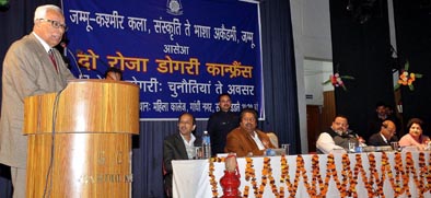 The Governor, as chief guest, was inaugurating a 2-day Conference on “Dogri: Challenges and Opportunities”, organized by the Jammu and Kashmir Academy of Art, Culture and Languages, at Government Degree College for Women, Gandhi Nagar, here today.