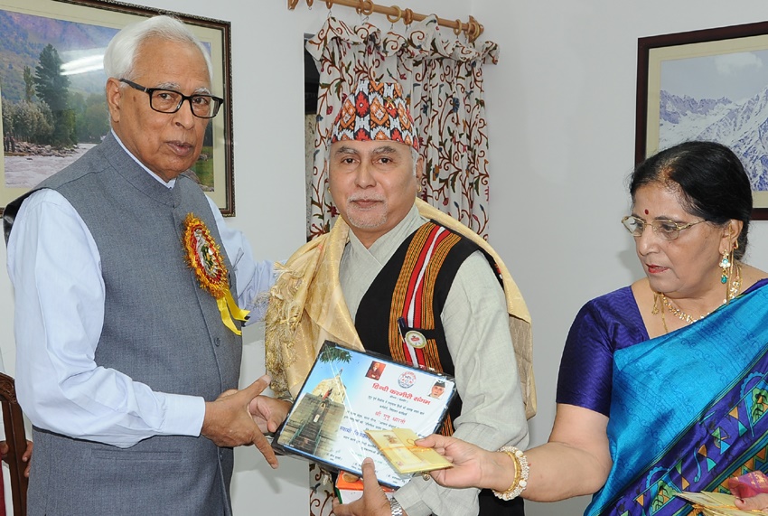 The Governor congratulated the authors who received recognition and literary awards which have been instituted by the HKS. He also released “Janam Shatabdi Granth- Dina Nath Nadim” and “Awadhi Tatha Kashmiri Lok Geeton Mein Loktattava”- a comparative study of Kashmiri and Awadhi culture, both books written by Dr. Budki and “Kashmir Sandesh”- a quarterly Hindi magazine edited by Dr. Budki . Dr. Ram Chander Roy presented “Hindi EvamTagore”, a book written by him to the Governor.