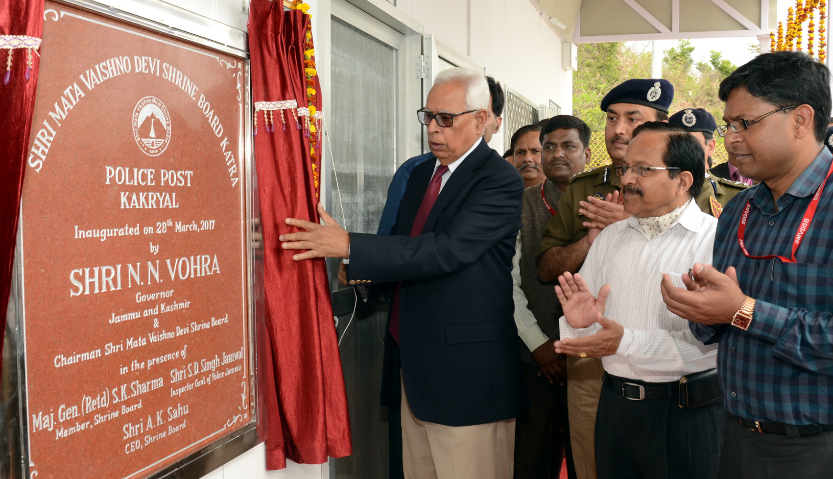 JAMMU: Governor N. N. Vohra, Chairman of Shri Mata Vaishno Devi Shrine Board, today inaugurated the newly constructed Police Post at Kakryal. The prefabricated building of the Police Post, with allied infrastructural facilities, has been constructed by the Shrine Board within a record time of less than three months at a cost of  over Rs. 21 lakh. The Police Post is located on land owned by the Shrine Board.