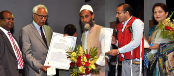 Governor NN Vohra distributing Dak Sewa Awards at Police Auditorium on Monday.
