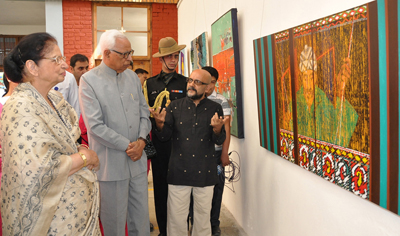 The exhibition formed part of an interactive workshop initiated by Veer Munshi Art Initiative and supported by the D.P. Dhar Memorial Trust. The artists, whose paintings were exhibited, described their works of art to the Governor.