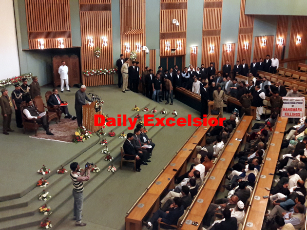 Governor, N N Vohra addressing the Joint Session of Legislative Assembly in Srinagar on Wednesday. By Daily Excelsior - May 25, 2016 Share FacebookTwitterWhatsAppPinterestLinkedinCopy URLTelegramEmailTumblrReddItPrintKoo Follow our WhatsApp channel