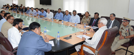 Governor N N Vohra chairing a meeting of Administrative Secretaries in Srinagar on Wednesday. By Daily Excelsior - June 21, 2018 Share FacebookTwitterWhatsAppPinterestLinkedinCopy URLTelegramEmailTumblrReddItPrintKoo Governor N N Vohra chairing a meeting of Administrative Secretaries in Srinagar on Wednesday. Follow our WhatsApp channel